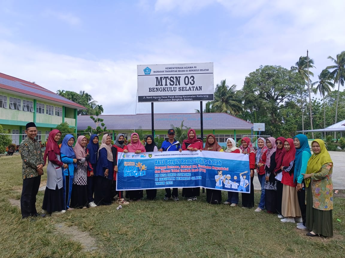 Dinas Kesehatan Bengkulu Selatan mengunjungi MTsN 3 Bengkulu Selatan dalam rangka melaksanakan program Aksi Bergizi. Dalam program ini ada beberapa kegiatan yaitu sarapan bersama, edukasi gizi, kesehatan reproduksi, dan minum tablet tambah darah. Kegiatan ini melibatkan selurus siswi kelas VIII dan IX MTsN 3 Bengkulu Selatan.